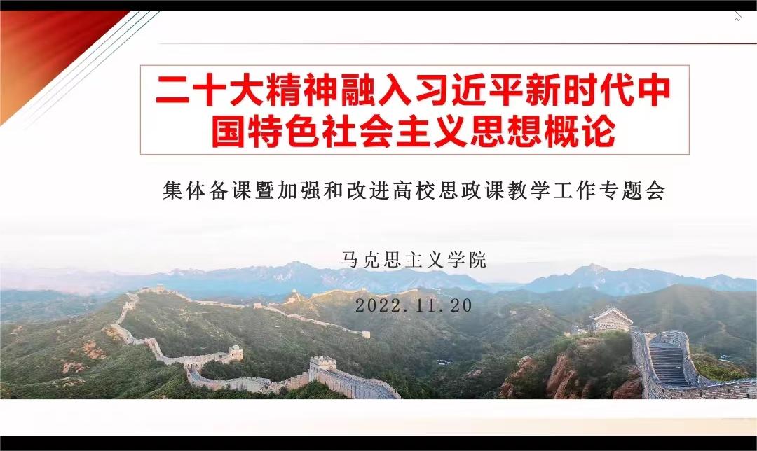 为及时有效地把党的二十大精神融入习近平新时代中国特色社会主义思想概论课教学,结合省教育厅组织的《习近平新时代中国特色社会主义思想概论教学要点及参考资料》教学工作专题培训会,2022年11月20日下午15:30,习近平新时代中国特色社会主义思想概论课程组召开党的二十大精神融入思政课集体备课暨加强和改进高校思政课教学工作专题会。院长寇鸿顺及《习近平新时代中国特色社会主义思想概论》专兼职教师参加了本次活动,会议由习近平新时代中国特色社会主义思想概论教研室主任李文君主持。